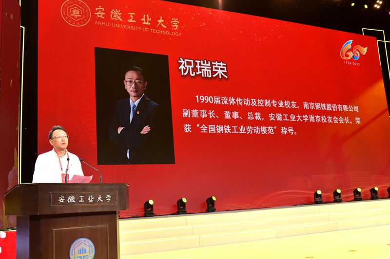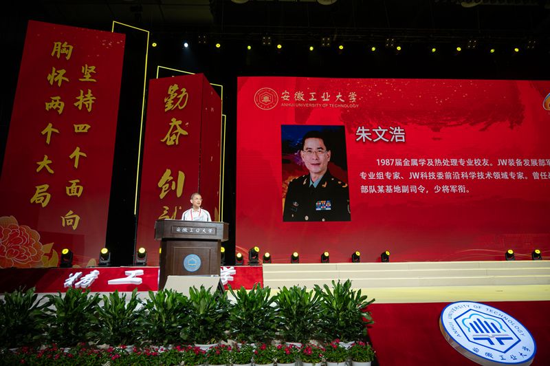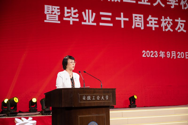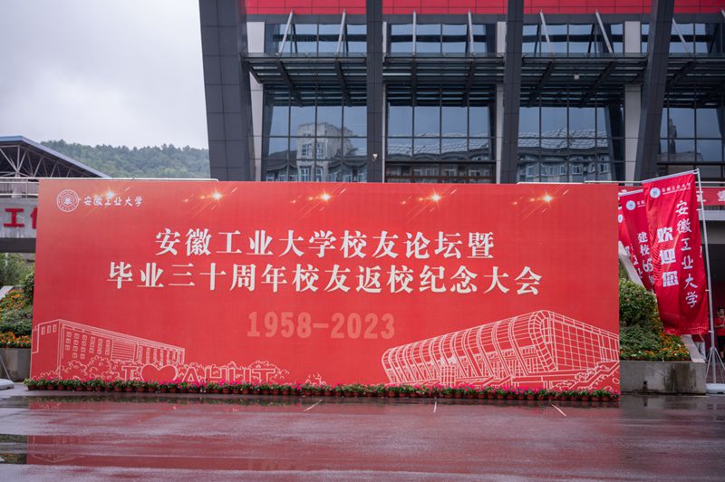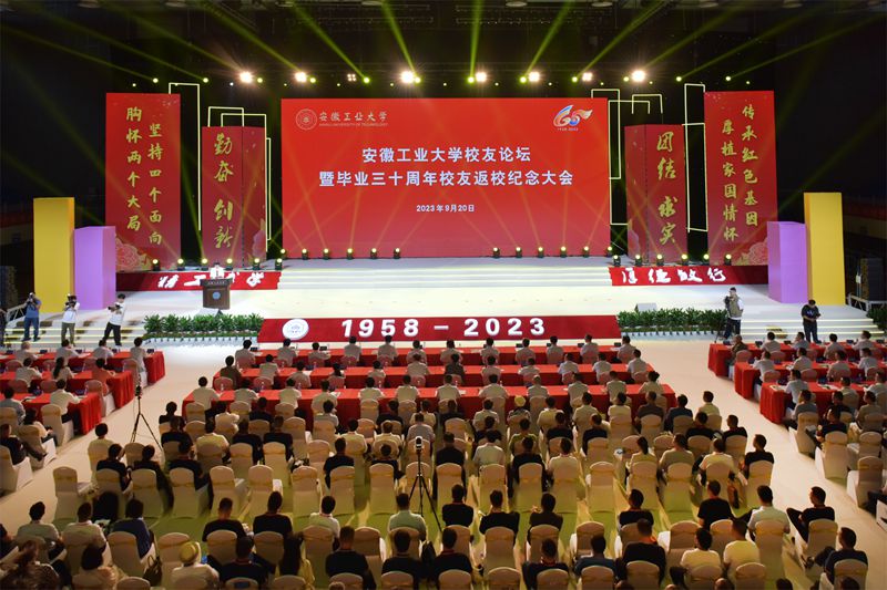 上午10时,安徽工业大学校友论坛暨毕业三十周年校友返校纪念大会在秀山校区体育馆隆重举行。中共第十七届、十八届中央委员,第十届、十一届全国人大常委会常务副秘书长、机关党组书记王万宾校友发来贺信。马鞍山市委书记袁方,校友朱文浩少将,中国十七冶集团公司党委书记、董事长喻世功校友,马鞍山市委常委、市委秘书长方文,马鞍山市委常委、市委宣传部部长陈永红校友,宝武集团总法律顾问兼法务与合规部部长蒋育翔校友,马鞍山市政协副主席𧨿圣国校友,马鞍山市政协副主席郑啸,中国五冶集团有限公司党委委员、副总经理、总工程师代小强,武汉工程职业技术学院党委书记、宝武集团工会副主席、宝钢教育基金会秘书长陈英颖校友,南京钢铁股份有限公司副董事长、董事、总裁、南京校友会会长祝瑞荣校友,宝武马钢集团党委常委、马钢股份公司副总经理伏明校友,宝武集团华宝(上海)股权投资基金管理有限公司董事、总裁贾璐校友,北京化工大学教授、博士生导师、校学术委员会副主任邱介山校友,复旦大学教授、博士生导师孙大林校友,以及马鞍山市相关部门和区县负责人,政产学研合作单位负责人,全国各地校友会会长、优秀校友代表、毕业三十周年返校校友代表等应邀出席大会。历任校领导,校领导班子成员,校党委常委,校党委委员、纪委委员,全体中层干部,今年退出中层正职领导岗位的干部,省市两级人大代表和政协委员,民主党派负责人,师生代表等参加大会。大会由校党委常委、副校长顾明言主持。