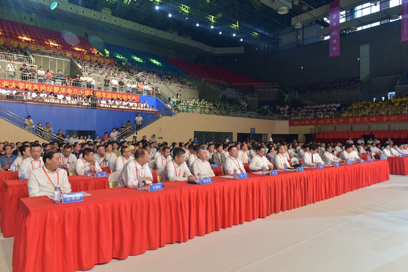 在场领导、嘉宾、校友和师生还欣赏了由著名诗人欧震创作、学生带来的诗朗诵《和新时代一起奔腾、一起飞跃》。大会伴着激昂的校歌结束。