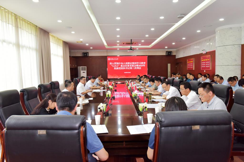 5月30日下午,我校召开深入贯彻中央八项规定精神学习教育重点任务布置会暨2025年院级党组织书记第三次例会。校党委书记陆林、党委副书记王俊出席会议,党委常委,各院级党组织书记,相关部门、直属单位负责人参加会议。会议由王俊主持。
