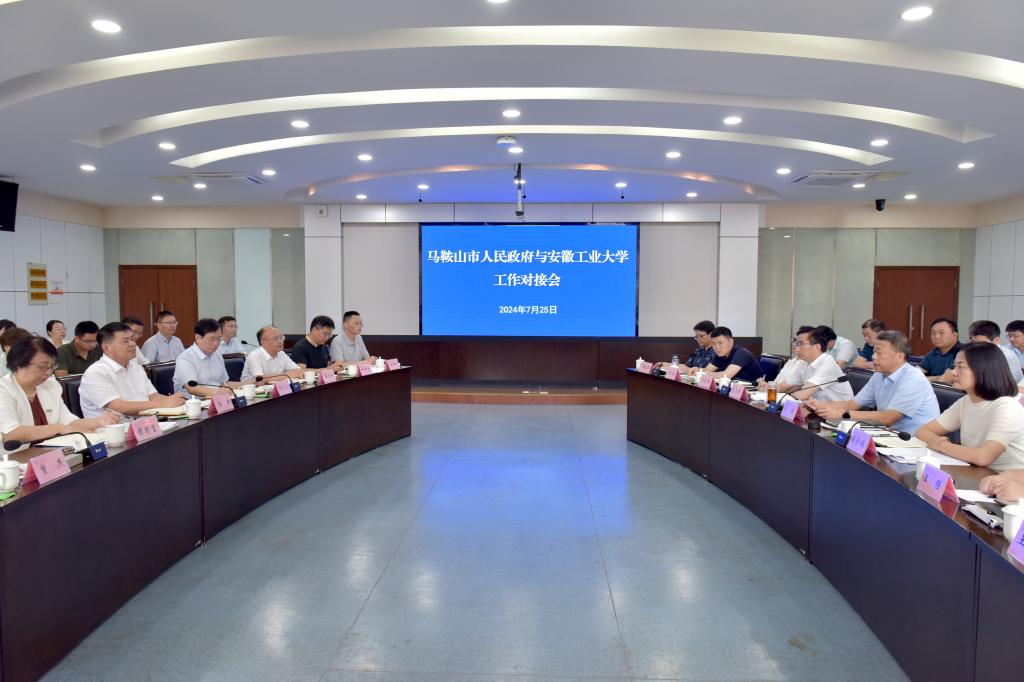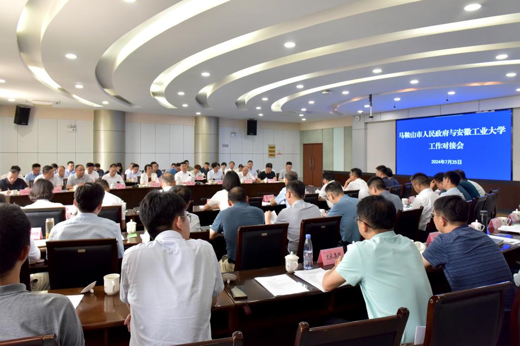 7月25日下午,马鞍山市政府与我校工作对接会在佳山校区会议中心召开。马鞍山市委副书记、市长葛斌,副市长阚青鹤、夏迎锋,市政协副主席、市政府秘书长汪强,我校党委书记陆林,党委副书记、校长魏先文,党委常委、副校长顾明言、王先柱、曾杰出席会议。会议由阚青鹤主持。