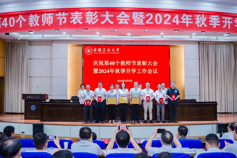 大会在雄壮的国歌声中拉开序幕。学术副校长龙亿涛宣读了表彰决定;材料科学与工程学院教师张振亚代表受表彰人员发言。会议分14个批次为享受国务院特殊津贴人员、全国模范教师、安徽省“教书育人楷模”“优秀教师”“教学名师”“教坛新秀”、安徽省相关人才项目“杰出人才”“领军人才”“青年拔尖人才”、全国教科文卫体系统模范职工小家、第三届全国高校教师教学创新大赛获奖教师团队等集体和个人颁发了奖牌、荣誉证书。