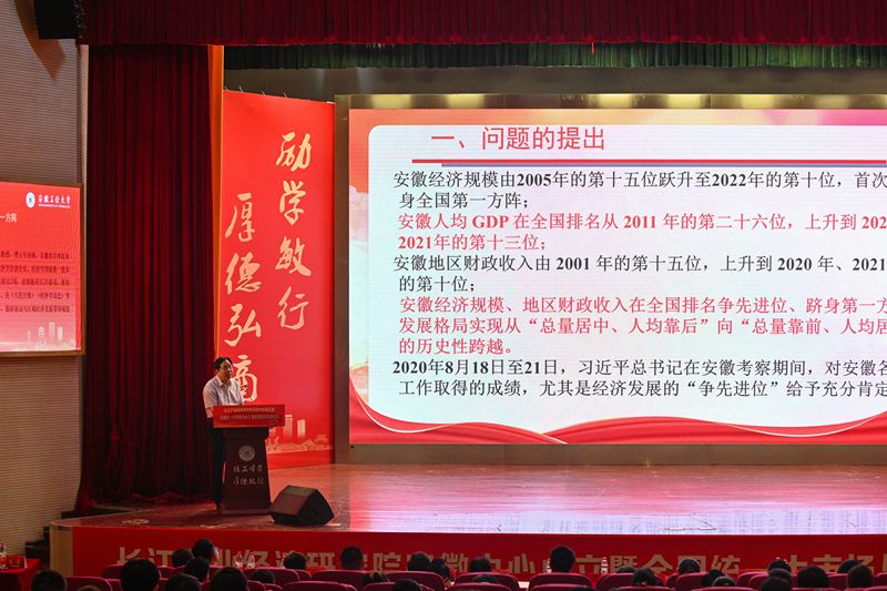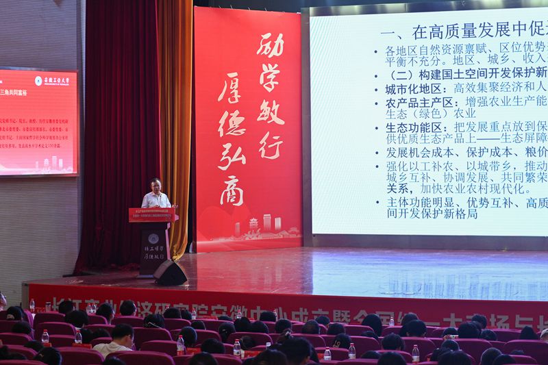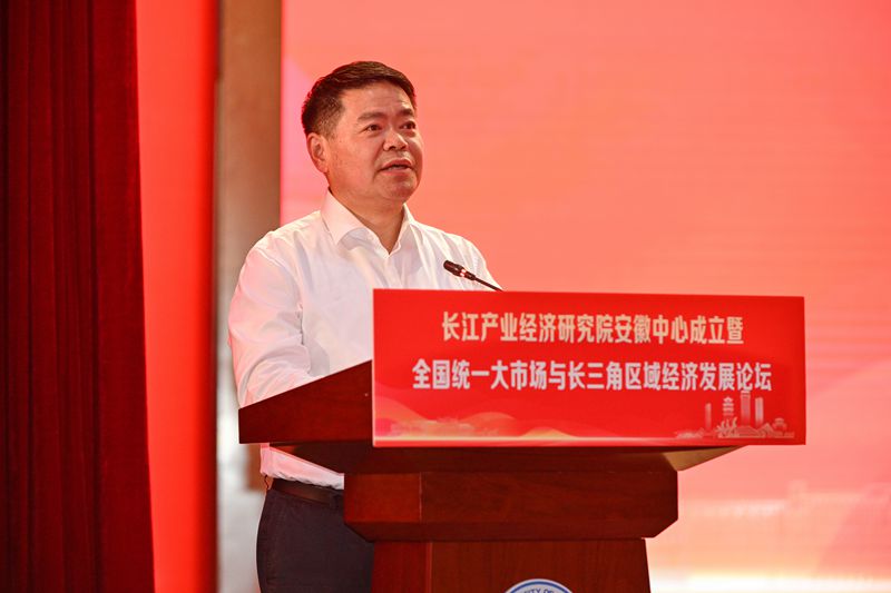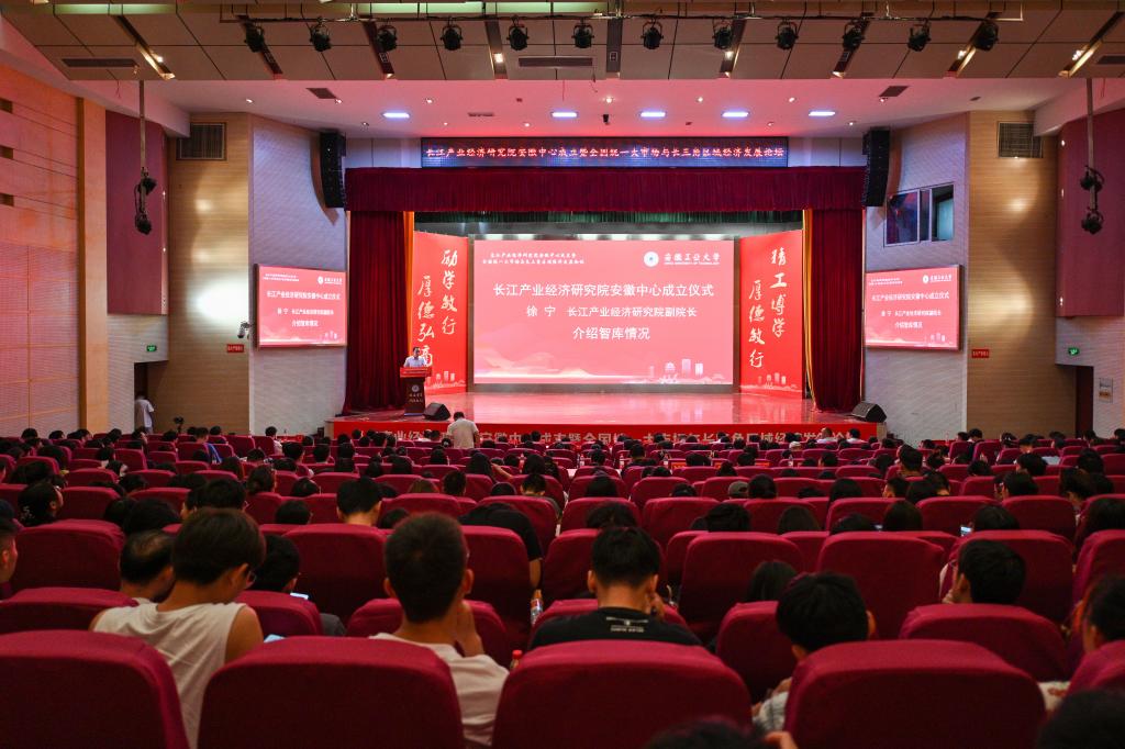 6月24日下午,我校与长江产业经济研究院主办的长江产业经济研究院安徽中心成立仪式暨全国统一大市场与长三角区域经济发展论坛在秀山校区新大学生活动中心举行。校党委书记陆林,安徽省社会科学院党组书记、院长曾凡银,南京大学副校长陆延青,马鞍山市委常委、宣传部部长陈永红出席。长江产业经济研究院专家学者,安徽省委宣传部、马鞍山市社科联、市科技局相关负责人,学校相关部门负责人、商学院师生代表等近600人参加。成立仪式由校党委常委、副校长王先柱主持。