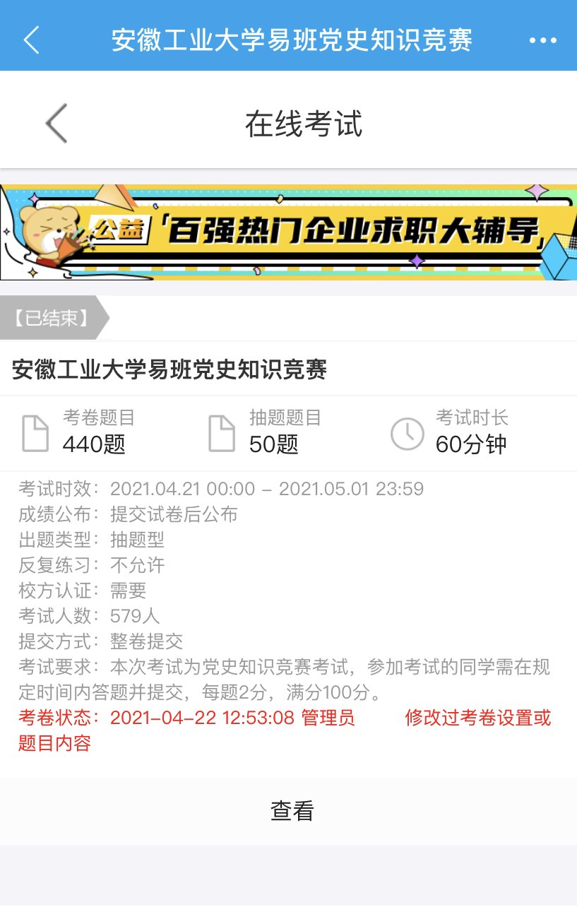 为深入贯彻落实习近平总书记在党史学习教育动员大会上的重要讲话精神,推进党史学习教育走深走实、出新出彩,我校依托易班平台打造党史学习教育“云课堂”,打破教育时空壁垒,发挥网络育人优势,让学生主动探索党史、学习党史、感悟党史。
