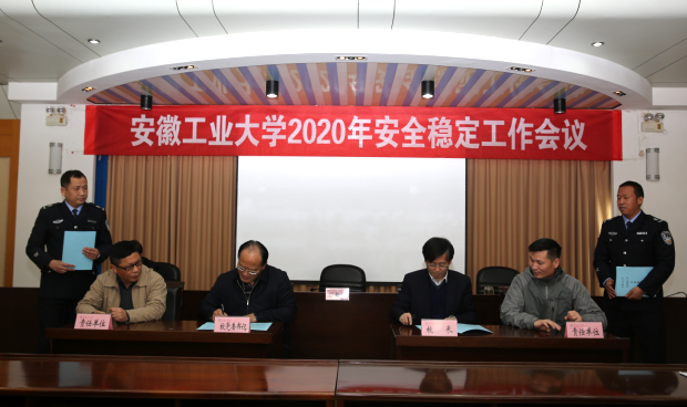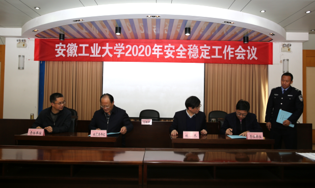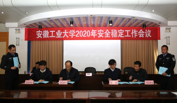 会上,刘新跃、魏先文代表学校与学院(部门)党政负责同志代表签订了《安徽工业大学2020年安全稳定工作目标责任书》。